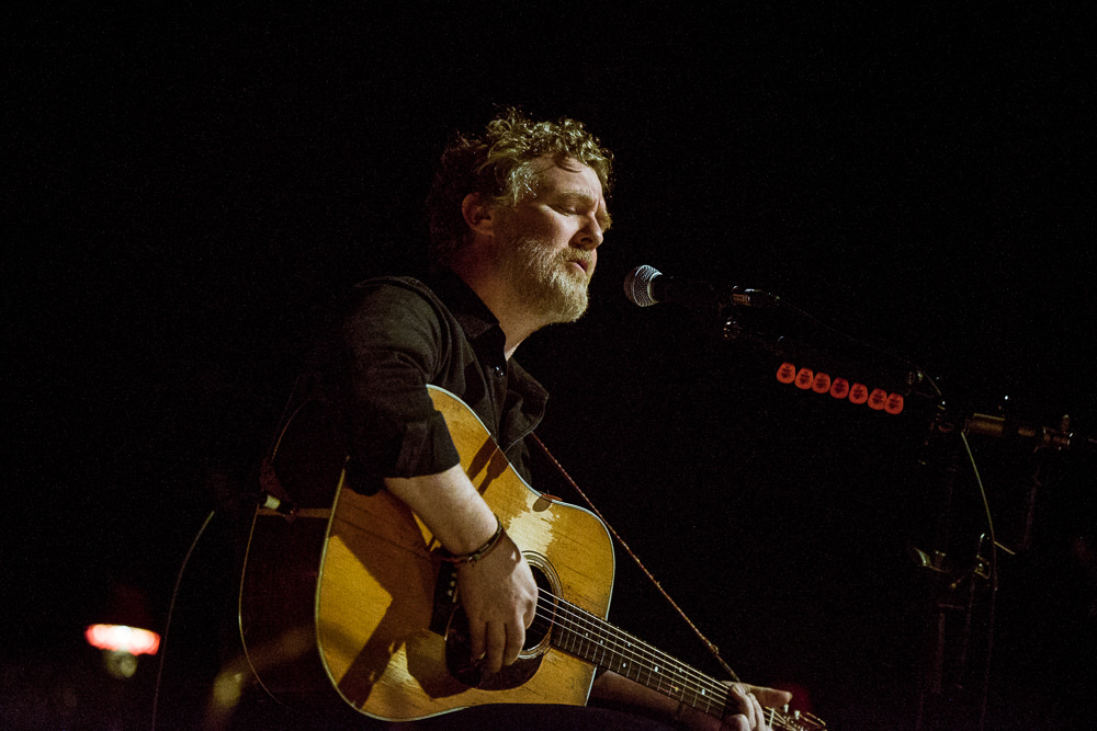 Dat extraatje maakte dat er op zijn hoogst veertien (!) muzikanten op het podium stonden (en we hebben het gevoel dat we er nog ergens eentje vergeten). Glen, de drie Estse dames, drie strijkers, drie blazers, een toetsenist, een bassist, een gitarist en een uitstekende drummer. Dat betekent dat je je nummers zo groot of zo klein kan brengen als je wil. Hansard begon zijn concert op zijn kleinst: helemaal alleen. Hij bracht High Hope en het prachtige Time Will Be The Healer van zijn nieuwe, derde album ‘Between The Shores’. Het nummer is typerend voor de liefdesliedjes van Hansard en is samen te vatten als “Het is kut nu, maar het wordt nog wel beter, later.”