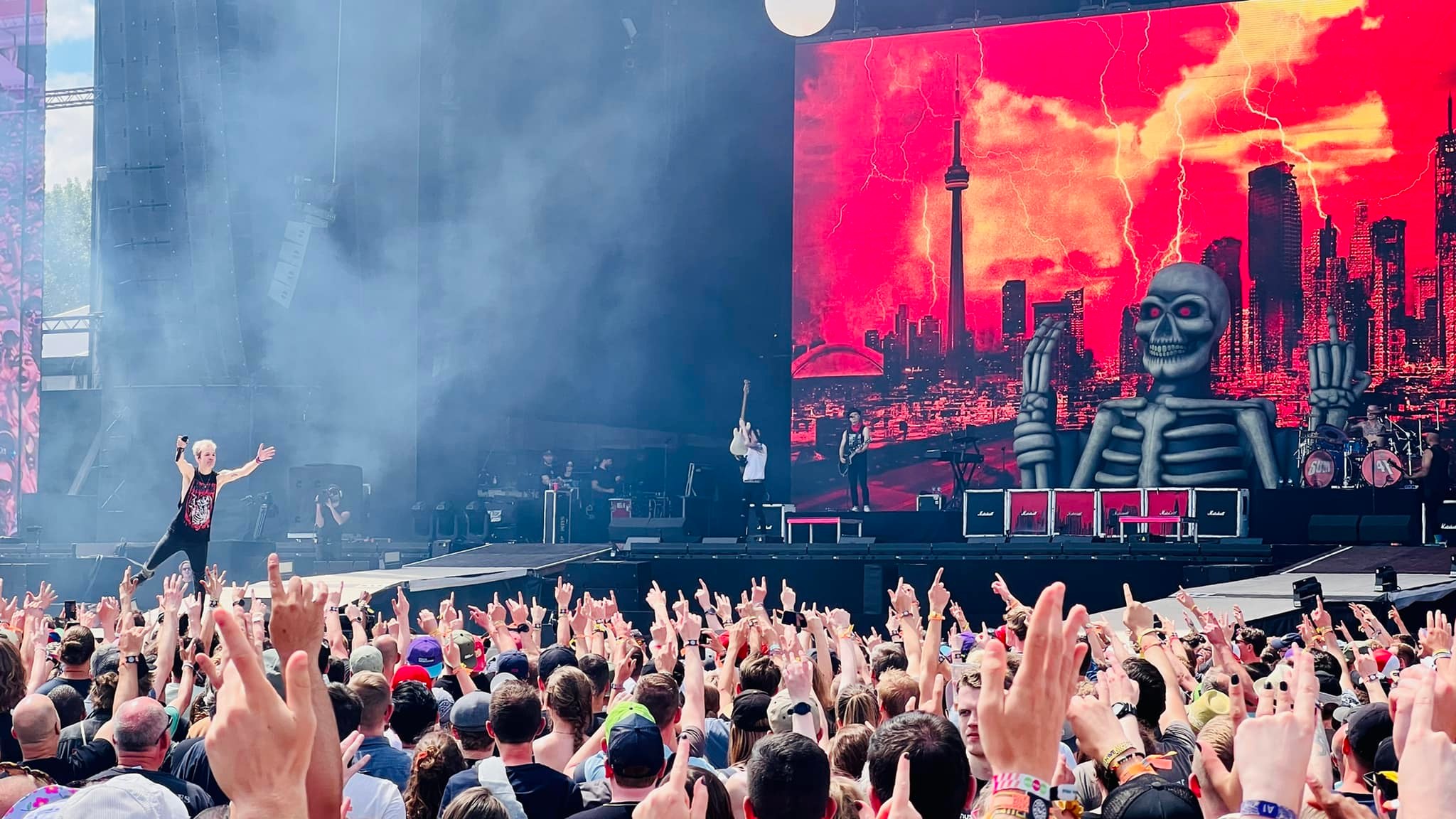 Sum 41 legde de lat voor die dag (en de rest van het festival) al meteen enorm hoog. Zanger Deryck Whibley stak het niet onder stoelen of banken en gaf al aan niet volledig tevreden te zijn met het vroege aanvangsuur. Hij en kompanen mochten zich dan al gestoord hebben aan het vroege uur, het leek wel de juiste motivatie voor een knaloptreden te zijn.